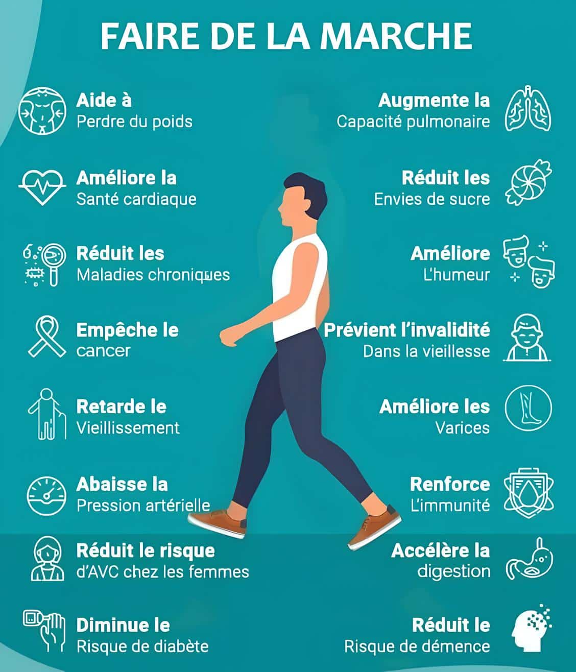 Découvrons ensemble les multiples avantages physiques et psychologiques de la marche, une activité simple et accessible à tous ! – Bienfaits Physiques : 1. Renforcement Musculaire : La marche sollicite les muscles des jambes, des fessiers et du dos, favorisant leur développement et leur tonification. 2. Amélioration de la Santé