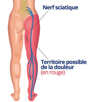 La Sciatique Qu’est-ce que la sciatique ? La sciatique aussi appelée sciatalgie correspond à une souffrance du nerf sciatique et se traduit par une douleur sur tout le trajet ou sur certaines zones du nerf sciatique. Dans la majorité des cas, le nerf est irrité au niveau de son émergence de